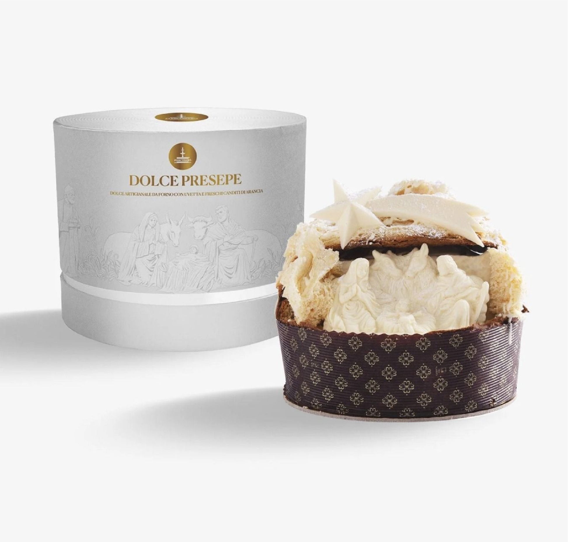 Dolce Presepe este un panettone artizanal premium, de 1,7 kg, îmbogățit cu stafide și portocale confiate, decorat cu o Scenă a Nașterii realizată manual. Ambalat într-o cutie luxoasă, acest desert italian impresionează prin gustul rafinat și detaliile artistice, fiind perfect pentru cadouri și momente speciale din perioada sărbătorilor.