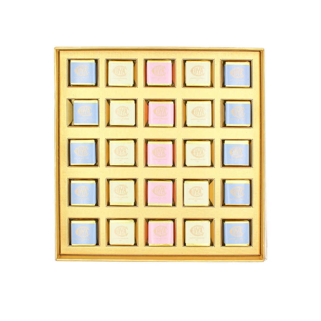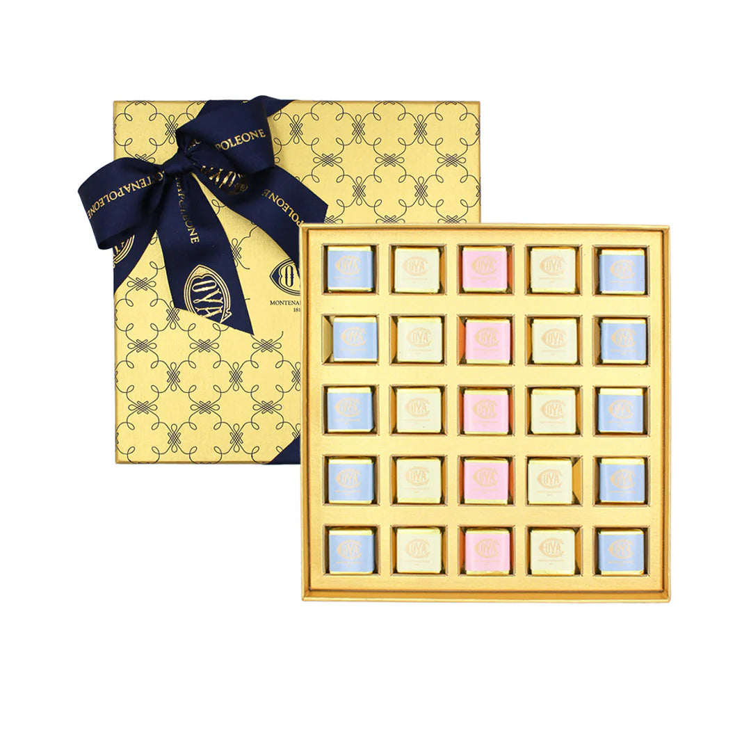 Ambalate într-o cutie aurie pătrată: soluția perfectă pentru un cadou prețios, potrivit pentru iubitorii de dulce.